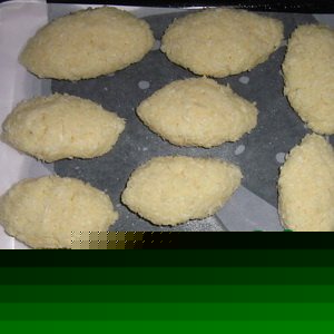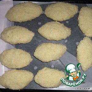Сформировать овальчики и укладывать на противень с пергаментной бумагой.
