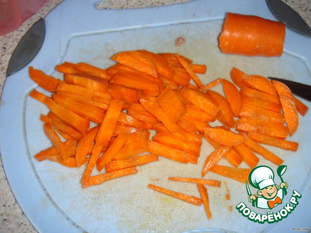 • Морковь порезать соломкой, лук полукольцами.