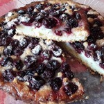 Вишню без косточек смешиваем с крахмалом и 2 ст. л. сахара, выкладываем поверх теста, отправляем в предварительно нагретую духовку на 40 -45 мин. при 180 С.