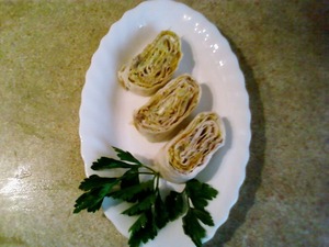 Рецепт «Рулет из лаваша с овощами и консервами»: