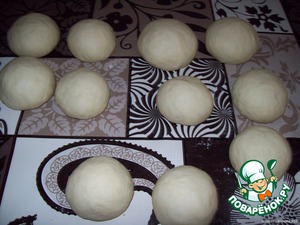 Разделить тесто на равные части и скатать шарики.