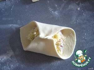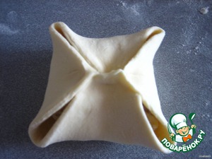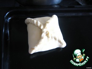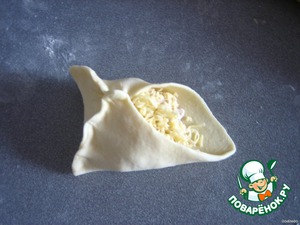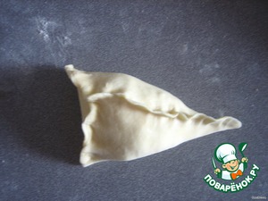 Можно сделать треугольники. Для этого соединяем три угла прямоугольника из теста и защипываем смежные стороны.
