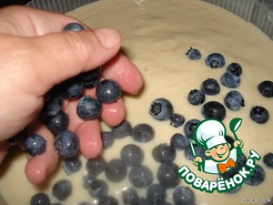 Ягоды (а вы уже их помыли и перебрали, верно?) кладём ровным слоем и слегка их "притапливаем" в пудинг. -