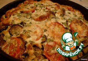 На лук кладем морковь, накрываем ее кружками баклажана.
