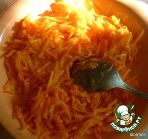 Натираем крупно морковь, обжариваем и выкладываем на салфетку.