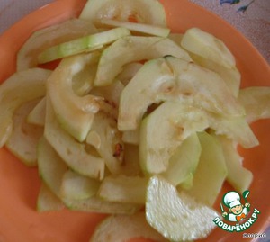 Полукружками нарезаем кабачок, обжариваем, обсушиваем.