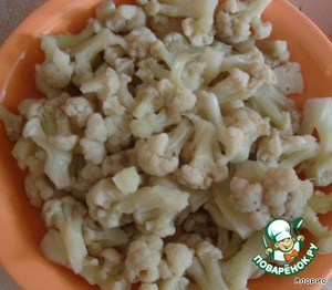 Отвариваем разобранный на соцветия средний кочанчик цветной капусты в подсоленной воде.