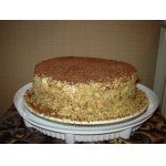 5. На нижний корж с конфитюром выложить сверху половину крема, затем положить второй круг, и на него выложить остальной крем. Торт поставить минимум до утра в холодильник.