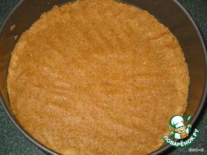 Разъемную форму диаметром 24-26 см. смазать растительным маслом(и бока тоже),распределить по дну равномерно массу из печенья хорошо утрамбовав руками,поставить на 1 час в холодильник. -
