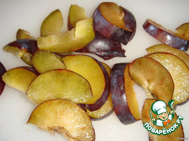 Сливы отделить от косточек и порезать на маленькие дольки.