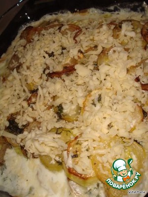 Выложить кабачки в форму для запекания. Залить сливками. Я этот момент забыла сфотографировать:\' ( *SORRY*. И отправить эту красоту в заранее разогретую до 180 градусов духовку, на 20 минут.