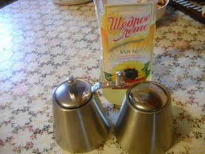 Все перемешать, заправить подсолнечным маслом, добавить соль и перец