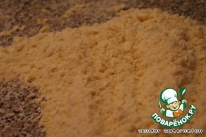 • и выстелить им форму. Посыпать дно сухарями, выложить на них перемешанную с сахаром и крахмалом чернику: