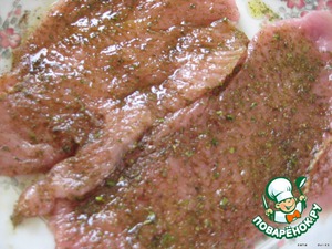 Замариновать в смеси из соли, перца, ароматических трав и оливкового масла минут на 10-15.