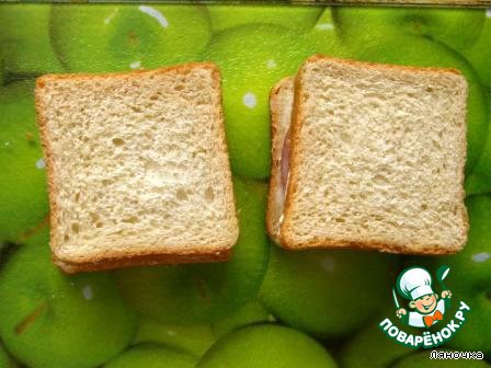 Бутерброды готовы - сыр расплавился и спаял между собой ломтики хлеба, получились симпатичные закрытые бутербродики.