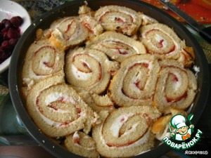 Нанести на рулеты слой творога. -