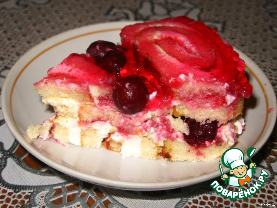 Легкий и быстрый в приготовлении тортик. Очень хорош летом, когда совсем не хочется стоять у плиты. Можно приготовить также в виде порционного десерта. За основу взят рецепт из газеты "Скатерть-С амобранка".