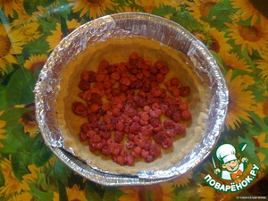 Выкладываем первый слой ягод (я взяла малину). И заливаем первый слой желе. -
