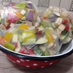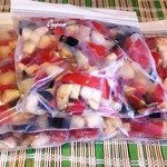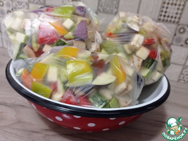 Разложить овощную смесь по порционным пакетам, закрыть, подписать и заморозить.