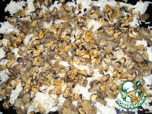 Выкладываем мидии и грибы