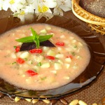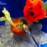 Подавать суп разбавленным водой со льдом, либо водой напополам с вином. Я не разбавляла совсем. Приятного аппетита!!!