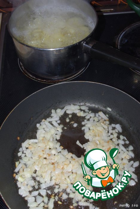 Для начинки, отвариваем картошку и обжариваем лук. Картошку солим немного, в лук при жарке, добавим щепотку сахара. И обжарится лучше и вкусу не повредит. Вообще сам лук - это дело вкуса, мне с ним больше нравится, но, насколько я знаю, его туда не кладут.