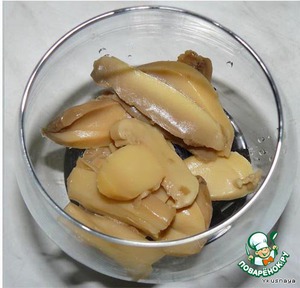 В порционные емкости (у меня 5 шт) выложить грибы.