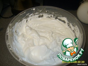 Белки с сахаром взбить в крепкую пену (я взбиваю 15-18 минут).