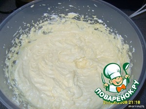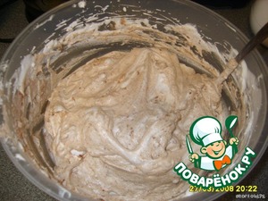 Какао с мукой осторожно слегка перемешать со взбитой массой (не рекомендуется перемешивать тщательно,так как при перемешивании масса оседает)