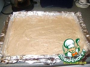 Выложить на противень с фольгой, смазанной маслом, разровнять.