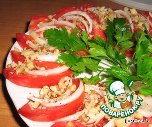 Посолить, поперчить, посыпать орехами, чесноком и полить маслом.