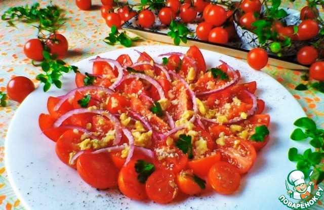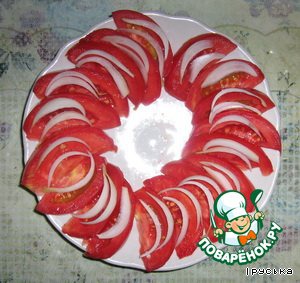 Помидоры нарезать ломтиками и выложить на блюдо.