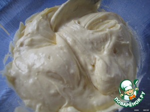 желтки растираем с сахаром, ванильным сахаром до белого цвета, добавляем маскарпоне и взбиваем все вместе, -