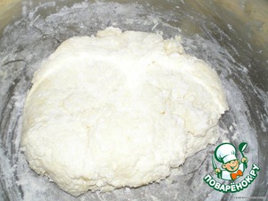 добавить соль,муку и замесить тесто,тесто не должно прилипать к рукам