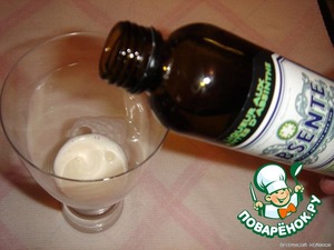 Растапливаем ванильное мороженое. Переливаем его в глубокий стакан и добавляем абсент.