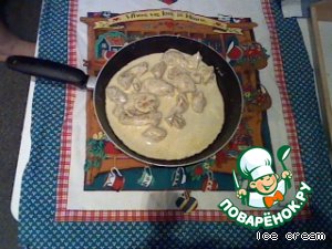 Добавить сметану, перемешать (должен получиться соус золотистого цвета из-за присутствия каррри). Потушить минут 5. В самом конце посолить, если это потребуется.