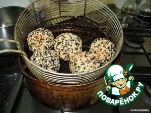 и жарим в глубоком масле на НЕ БОЛЬШОМ огне, до готовности в середине шариков.