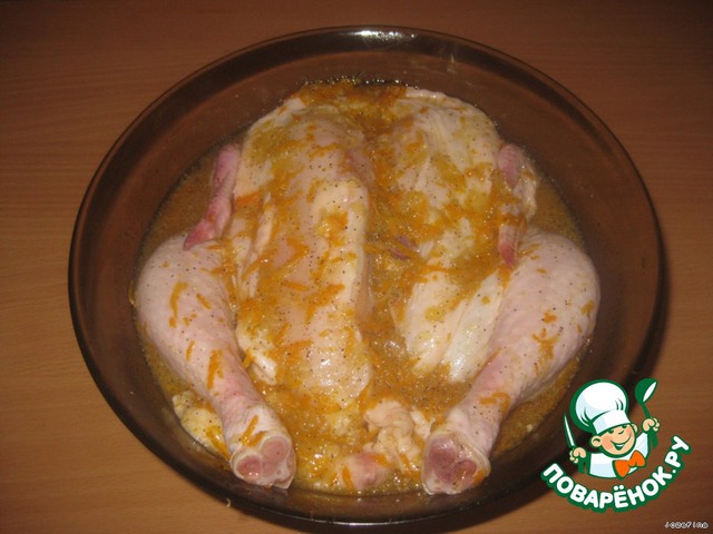 делаем маринад: смешиваем сок и цедру, мед, чеснок, оливковое масло, соевый соус (если нет, тогда соль и перец), имбирь