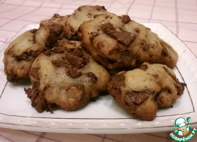 В подготовленную массу добавить резаный шоколад, муку и хорошенько замесить.