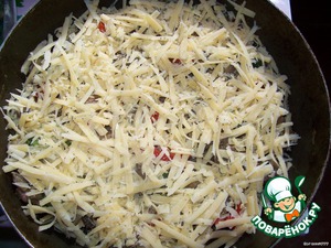 затем поливаем майонезом, выдавливаем чеснок и посыпаем с верху тертым сыром. ставим все это в разогретую духовку минут на 15-20.