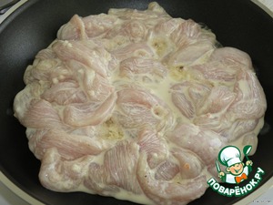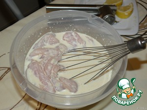 Далее курочку опускаем в наш уже готовый соус-маринад (я делала с вечера заготовку для обеда, но в принципе хватит и часа) *STOP*.