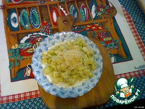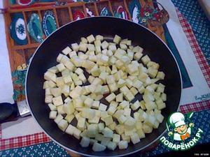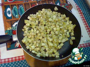 Кабачки очистить от кожицы, порезать на кубики 1,5 Х 1,5 см.