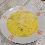 А тот, который брикетом (это сырный продукт, он не плавится), я разбиваю блендером, добавив бульон и потом выливаю в суп.