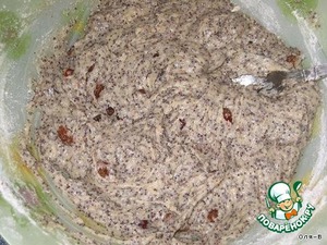 Мак и изюм залить кипятком по отдельности, дать постоять минут 10-15, затем мак процедить и перемолоть его в процессоре до белого цвета. Изюм отжать от воды и просушить его на салфетке.