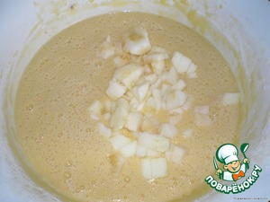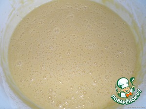 • Яйца взбиваем миксером с сахаром пару минут, добавляем муку и взбиваем еще около 1 минуты