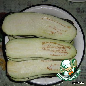 Баклажаны нарезать вдоль пластинками.