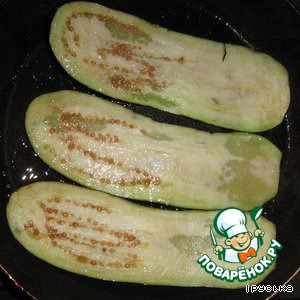 Баклажаны обжарить на растительном масле до золотистого цвета с обеих сторон.