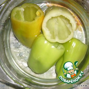 Перец, срезав верхушки, очистите от семян. Ошпарьте кипятком.