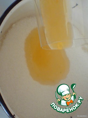 Добавляем в него 1ч.л. лимонного сока и 3ст.л. сахара. Взбиваем. Отставляем.