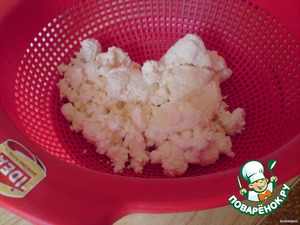 Тем временем творог один-два раза протираем сквозь сито.